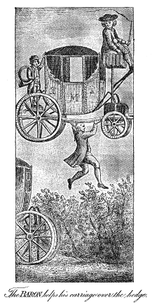 The Baron helps his Horses over the Hedge