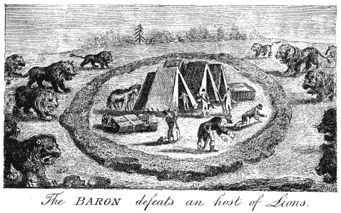 The Baron Defeats a Host of Lions.