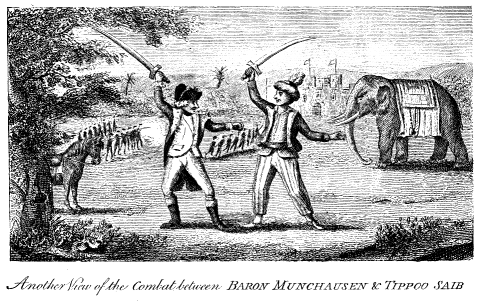 Combat between Baron Munchausen and Tippoo Saib.