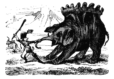 We thus see that the six editions (the second to the seventh) were issued in 1793, but as the plates to the seventh edition (and doubtless to the second and other editions) bear the imprint, "Published as the Act directs, for G. Kearsley, at 46, in Fleet Street, London, 1786," it becomes evident that the first edition was issued in that year; and that being four years before the publication of Bruce's Travels, which appeared in 1790, the work could not have been written to ridicule them. In fact, recent investigation has rendered it almost a certainty that the original author of "Munchausen's Travels" was a learned but unprincipled scholar, of the name of R. E. Raspe, who had taken refuge in this country from the pursuit of justice (vide Gentleman's Magazine, January, 1857), and that many of his stories are of ancient date, and current in various countries. Many are to be found under the title of "Mendacia Ridicula," in vol. iii. of "Deliciae Academicae," Heilbron, 1665; that of "sound being frozen in a post-horn" is from Rabelais, appears to have been known also in Spain and Italy, and is said by a writer in Notes and Queries (No 61, 1850), to be traceable to one of the later Greek writers, from whom Jeremy Taylor, in one of his sermons, borrows it as an illustration; while the story of "the horse cut in two by the portcullis" is translated by Lady C. Guest, in "The Mabinogion," from an ancient Welsh manuscript.