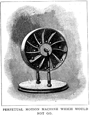 "Why can't it be done?" says the Inventor. Many reasons to the contrary might be adduced, but the most cogent answer to the practical man lies in this great fact, that up to the present not a single perpetual motor has ever yet been seen at work - that is to say, no machine has ever yet been invented which, when once started, would work for an indefinite time without a corresponding amount of energy being given it.