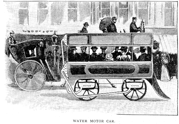 the vehicle and its occupants bears upon water cylinders supported on the wheels. The pressure