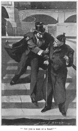 I had reached the top of the steps and was about to descend them in order to accost him, when something occurred which stopped me and held me spell-bound. The moon had emerged from its pall of cloud and was now shining clear and bright across the river. Thirty seconds must have elapsed since we had heard the cry for assistance, and now, as I looked, the drowning man was washed in at the foot of the steps upon which we stood. It would have needed but the least movement on the part of the man below me to have caught him as he swept by and to have saved him from a watery death. To my amazement, however—and even now, after this lapse of time, my gorge rises at the very thought of it—the other did not offer to help, but drew himself back. Before I could return my eyes, the wretched suicide had passed out of sight and had vanished into the darkness again. As he did so a pronounced chuckle of enjoyment reached me from the man below—a burst of merriment so out of place and so detestable that I could scarcely believe I heard aright. I cannot hope to make you understand how it affected me. A second later a fit of blind fury overtook me, and, under the influence of it, I ran down the steps and seized the murderer—for such I shall always consider him—by the arm.
