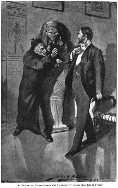 "Your thoughts are easily read," he began, with a repetition of that queer little laugh which I have described before; and as he uttered it he leaned a little closer to me till I was sick and faint with the horror of his presence. "You think me mad, and it will take more than my assurance to make you believe that I am not. How slight is your knowledge of me! But there, let us put that aside for to-night! There is something of much greater importance to be arranged between us. In the first place, it is necessary, both for your sake— your safety, if you like—and for mine, that yonder mummy should pass into my possession."