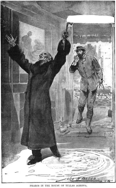 "O Tullus Agrippa!" he cried, as if apostrophising the dead man, "across the sea of time, I, Pharos the Egyptian, salute thee! Great was thy wealth and seemingly endless thy resources. Greedy of honour and praise wast thou, and this house was the apex of thy vanity. Here is that same triclinium where thy guests were wont to assemble when thou didst invite them to thy banquets. Here the room in which thou didst condemn thine only son to perpetual banishment. In those days, when the sun was warm and the table was spread, and friends crowded about thee and praised the beauty of thy frescoes, the excellence of thy wine, the cunning devices of thy cook, and the service of thy slaves, little didst thou dream that nineteen centuries later would find thy house roofless, dug up from the bowels of the earth, and thy cherished rooms a show to be gaped at by all who cared to pay a miserable fee. Least of all didst thou think then that Pharos the Egyptian would be standing in the room where once thou didst rule so absolute, telling a man, of a race that in thy day was unknown, of thy faults and follies."
